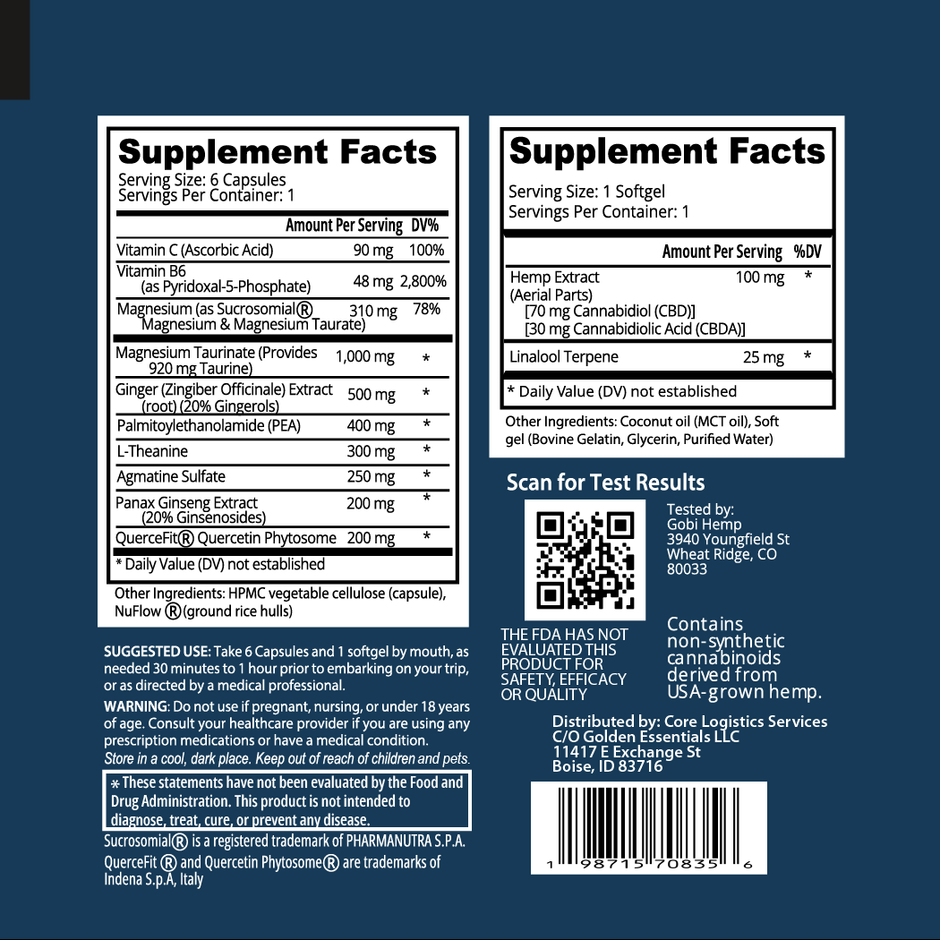 - Cardiovascular Support: Key ingredients support blood vessel dilation and support heart health, which is especially important in the context of a trip.